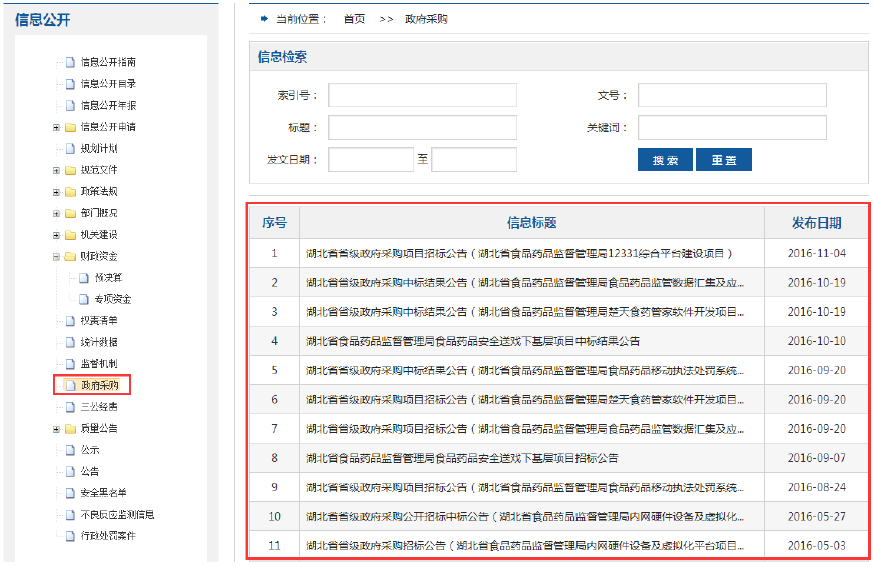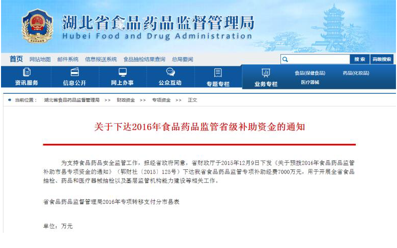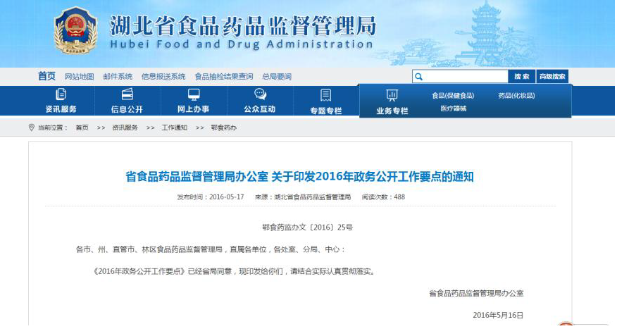 2016年湖北省食品药品监督管理局政府信息公开年报