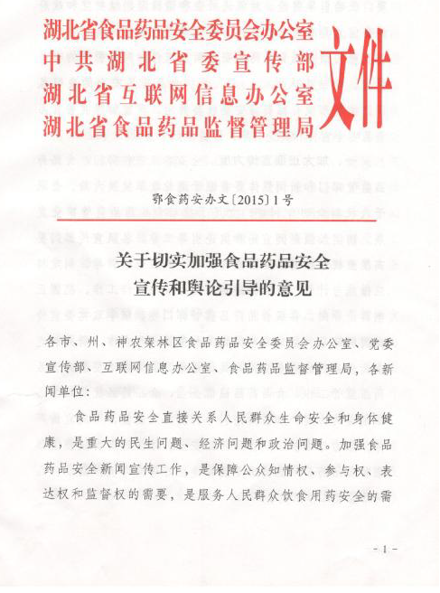 按照《中华人民共和国政府信息公开条例》、《湖北省政府信息公开规定》的有关规定和湖北省人民政府办公厅的要求,湖北省食品药品监督管理局编制了2016年度政府信息公开年度报告。全文包括政府信息公开2016年工作要点落实情况,主动公开政府信息情况,依申请公开政府信息情况,政府信息公开收费及减免情况,因政府信息公开申请行政复议、提起行政诉讼情况,政府信息公开组织推进情况,存在的问题和改进措施等。湖北省食品药品监督管理局政府网站http://www.hubfda.gov.cn/上可下载本报告的电子版。如对本报告有疑问,请联系:湖北省食品药品监督管理局办公室,027-87111501。